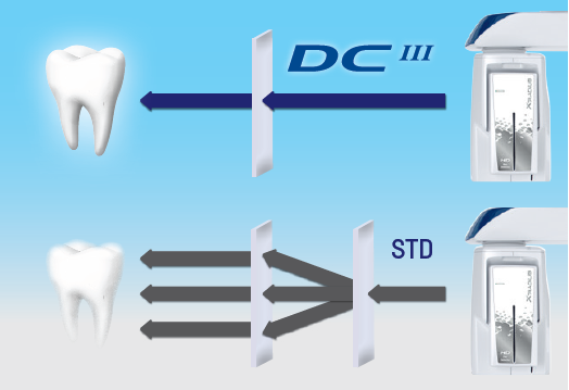 Преобразовываясь напрямую в электрические сигналы, минуя стадию преобразования в свет, рентгеновские фотоны остаются в неизменном виде до тех пор, пока не сформируют панорамное изображение. Таким образом благодаря минимальному рассеиванию сигнала технология позволяет генерировать значительно более четкие изображения, чем те, которые получены с использованием традиционной технологии. Это гарантирует высококонтрастные экстраоральные 2D-снимки при низких дозах облучения: панорамные изображения и телерентгенограммы, визуализацию верхнечелюстных пазух, ВНЧС, зубных рядов и прикуса.