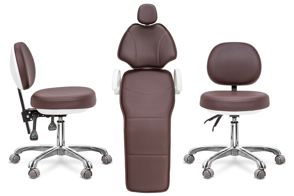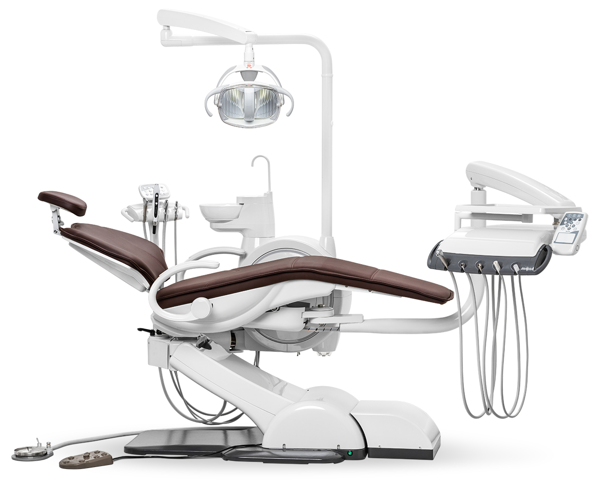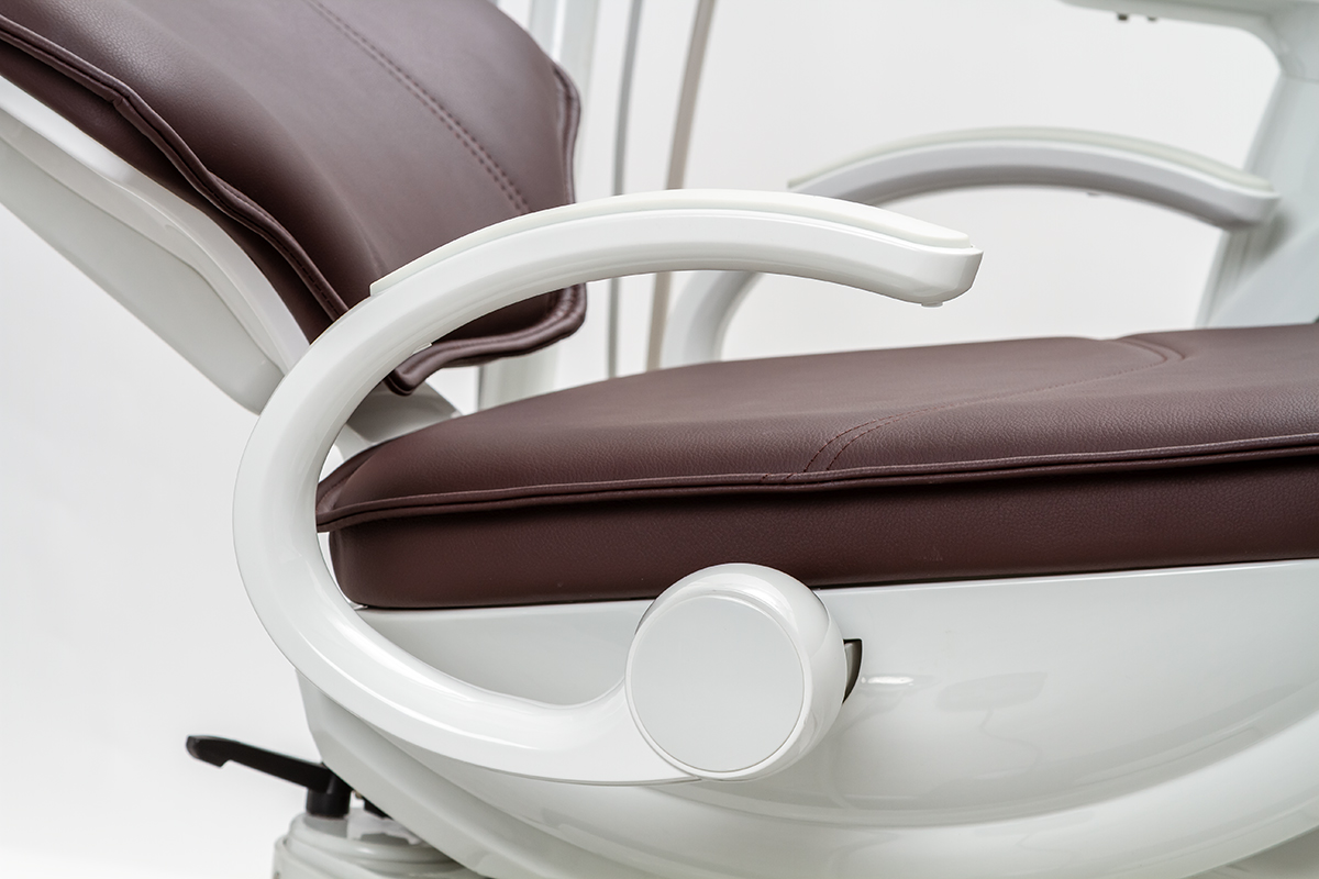 Главная особенность модели — система «Перформер», позволяющая переключать конфигурацию для врачей правши и левши без потери функциональности. Это решение делает установку по-настоящему универсальной. Чугунное основание и каркас кресла из алюминиевого сплава обеспечивают исключительную устойчивость.